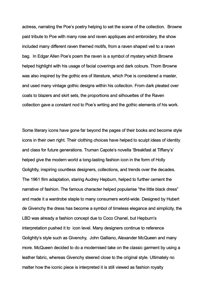 Where Words Meet Wardrobes: The Timeless Influence of Literature on Fashion is the title of my blog post, written as part of my editorial module, for Display Copy. This piece aims to reach beyond existing familiar references and suspend ones disbelief by making them dive into a world of fantasy and mystery.
